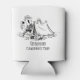 Camping can coolers are awesome party favours for man's birthday party, bachelor party, bonfire party, etc- Front has simple, cute black and white drawing of a happy camper setting up his rustic campsite with tent and camping supplies. Reads 'Camping Trip ' at bottom with personalized name in rustic, whimsical style letters. Same on both sides. Great also for family reunions, road trips, RVers, nature lovers, tailgating party, camp outs, and similar rustic outdoorsy events. We have matching camp out invitations, as well as lots of camping theme gifts and outdoor supplies in our Zazzle.com/angela65* shop.