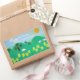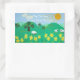 The original and cute illustration on this original and fun keychain is a painting in a "nieve" sort of style, it's bright and colourful. The picture shows some white and fluffy black faced sheep grazing behind daffodils on the hillside as the large sun shines down upon them. In the background you can see small leaf covered trees with red apples on them. This unique keychain has the fun slogan "May the sun always shine on Ewe!" and is suitable for people of all ages.