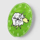 A cartoon illustration of a sheep in a green field. Agriculture, agricultural, or farmhouse style. Sheep farmer wall clock.