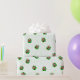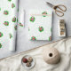This wrapping paper roll is white with green dots and fun skeletons inside vibrant red and green spatters shapes holding ornaments up to their eyes wearing Santa hats for your Creepmas or Christmas gifts.