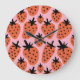 Fun strawberry, hand-drawn seamless design. large clock