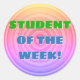 This fun, motivating sticker design features the message "STUDENT OF THE WEEK!". A sticker like this could perhaps be used to give positive motivation to a student. [~Z0000317]