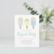 Nothing better for kids' summer birthday celebrations than popsicles. These invitations feature three popsicles, the first one with a bit bitten off, the second one melted and the third one untouched, all in pastel colours. With a fun script font, "Popsicle Party" is displayed in a teal blue colour. A trendy sans-serif typography displays the party details and the name. Reversing to pastel background with polka dots.