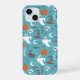 Fun Teal Doodle Halloween Pattern iPhone 15 Case