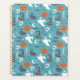 This design features a cute and colourful Halloween pattern set against a vibrant teal background. The design includes a playful mix of Halloween icons, such as cheerful ghosts, smiling jack-o'-lanterns, black cats, witches' hats, and skulls. Scattered among these main elements are crescent moons, bats, spiders, and small branches with leaves, all adding to the festive atmosphere. The use of bold, contrasting colours like orange, white, black, and grey makes each element stand out, creating a lively and fun pattern perfect for Halloween decorations, costumes, or themed party supplies. The overall feel is lighthearted and whimsical, ideal for celebrating the spooky season in a colourful and cheerful way.