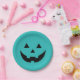 Fun teal jack o lantern pumpkin face Halloween Paper Plate