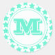 Fun Teal Stars Pattern & Monogram Classic Round Sticker