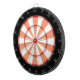 Fun time dart board in red white and cadmium orange.Cadmium Orange is a warm, welcoming and subtly dramatic hue that is striking enough to stand on its own . Is for the gaming room with dramatic flair.