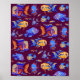 Fun tropical fishes on dark purple poster