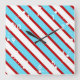 Fun Turquoise Blue Red and White Diagonal Stripes Square Wall Clock