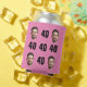 Fun 40th birthday photo can cooler in retro bold yellow design. Year is customizable to suit any birthday year! To get the cutout effect please use a png file with background already cut out. If not, photo will appear as a circle surrounded by it's own background, just like the preview shows. This is the pink version.