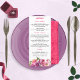 Elements: Vibrant watercolor florals accented by fun, modern fonts. Features parent names, and couple first and last names. Colours: Violet, plum, fuchsia, green, yellow, buttercup, blush. Themes: Fun, modern, whimsical, vibrant, spring, summer, timeless, romantic, garden. Collection: Fun Vibrant Violet Fuchsia Floral Wedding Collection Product Type: Menu