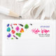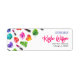 This simple return address label design with playful pattern with rainbow colour palette perfectly matches our Makeup Artist Graduation Party Invitations and other products in the collection. It features a pattern of beauty and makeup-related illustrations, such as lipstick, pink lips as well as hearts and exotic leaves like monstera arranged in a scattered fashion against a white background. The main colours of the illustrations include purple, pink, green, and blue, giving it a lively and playful feel.