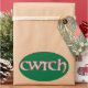 Mail a Welsh 'cwtch' to your loved ones! A sheet of oval stickers with the Welsh word 'cwtch', meaning 'cuddle' or 'hug' in a Celtic script, filled with a pretty Clematis pattern on a deep green background that you can change if you wish.