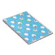 A fun Spiral Notebook, with a pattern of comic sheep and 'Cymru am Byth' in Red, on a Sky Blue background that you can change if you wish.