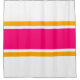 This fun colourful design features golden yellow stripes highlighting a wide vibrant bright pink centre stripe against a white background.