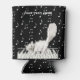 This can or bottle cooler has a black and white image of a fun white cat who is winking walking across piano keys on a black background with white music notes. Customise your text on the front and back with the template.