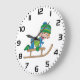 Fun Winter Sledding Boy Cute Snow Adventure Large Clock