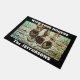 A running horse flings some dirt on this fun mat which says "Wipe your hooves."