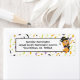 This return address label has a cute Halloween theme. There is a background of confetti with pumpkins and other Halloween themed items. There is a witch peeking around the corner on the right side. You can easily customize your address in the middle. Copyright JD Digi Designs