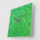 Printed with bright green and blue squares, with light yellow background and black traces. An effect similar to well spaced bricks upon one background image. The green square converges from light green to a bluish hue; upon the yellowish background the squares can cause the illusion that they are floating; depending on the position of looking and ambient lighting.