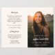 Moderne, simple ordre de service plié budget funeral programme pour célébrer la vie de votre être cher dans un style moderne minimaliste design. Le programme peut facilement être personnalisé avec votre propre photo et texte pour créer un hommage spécial pour les funérailles, le mémorial ou la célébration de la vie de votre être aimé. L'image montrée n'est à des fins d'illustration que pour être remplacée par votre propre photo. L'image de l'espace réservé est celle d'une jeune fille heureuse avec de longs cheveux bruns portant un gilet botanique à fleurs. Si vous avez besoin d'aide pour personnaliser ce produit, veuillez me contacter en utilisant le bouton de message et je serai heureux de vous aider.