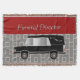 Funeral Director Woven Blanket in red background with grey and cream pattern and artist drawn hearse design. Makes a great appreciation gift for any funeral director