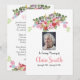 Funeral Program Prayer Card: With beautiful floral design and White card - celebrate your loved one’s life for their memorial or funeral with beautiful illustration of pink, blue flowers and green leafs. With space(mock photo) to add a photo on the front and editable text throughout.