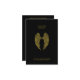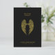 Design for a funeral memorial of loved one passed away invitation with an angels wings in gold.