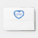Funeral memorial gift wreath scatter seeds or gift blue on white floral art favour envelopes. Memorial personalized Matthew 5:4 reads Blessed are those who mourn, for they shall be comforted, then personalize with the name of your loved one, dates, and a special photo. Ideal for remembrance seed packets giving, to gift flower seeds for a lasting small favour gifts to help guests remember your loved one. Other matching blue forget-me-not wreath flower art items are available. Inked art and watercolor painting of forget-me-nots in a heart-shaped wreath by Sarah Trett for www.mylittleeden.com