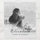 A photo is able to be placed on the front of the label with the monogram and dates on a white overlay.