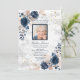 Funeral Navy Blue Blush Pink Marble Floral Photo Invitation