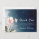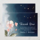 This Romantic Funeral Black Floral Card features a watercolor picture blush pink flowers a few shiny golden droplets on a navy blue gradient background and white font. The reverse side of the card is navy blue colour with gradient. Add Your thank you message.