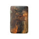 This design features a painting by the English Victorian artist Frank Dicksee (1853–1928). It is a dark and dramatic depiction of the funeral of a Viking warrior. The dead man's body is being sent out to sea on a burning pyre. A crowd of Viking soldiers is standing on the shore: the men have their their arms and weapons raised in the air. They are wearing crested helmets and breast plates. The burning ship that is carrying the dead body is being pushed out to sea by muscular male figures. The stern of the boat is carved into the form of the head of a mythical beast. Rocky mountains can be seen in the background under a dark and stormy sky. The entire scene is illuminated by the glow of the burning pyre and torches carried by the Viking warriors. The original artwork was painted by Frank Dicksee in 1893.