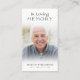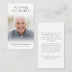Funeral Photo Loving Memory Prayer Card. Keep the memory of a loved one close with this custom personalized prayer card featuring one treasured photo, the title IN LOVING MEMORY, name and dates and an editable heartfelt remembrance message. With its simple yet elegant classic black and white design and elegant calligraphy, it makes a meaningful keepsake to share at a funeral, memorial service or Celebration of Life and offers comfort and a lasting tribute for family and friends. Its small and portable size of 3.5x2" (wallet-sized) makes it convenient for loved ones to carry it with them as a reminder of your loved one’s life and spirit. Personalization makes each card unique.