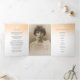 Funeral program order of service white apricot orange rose and white dove in loving memory 6-page tri-fold with three photos funeral program. An elegant program where you can simply replace the sample text and photos with your own photos and memorial service details. Other matching items and colour options are available to reflect your loved ones' favourite colour rose. Design and rose photography by Sarah Trett for www.mylittleeden.com (Photos are placeholder images only for you to replace with your own loved ones).