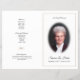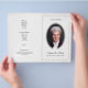 This minimalist funeral program is beautifully designed with an oval fade vignette on the photo and gold trim. The program includes special features to add a listing for family and posterity. This program requires folding.