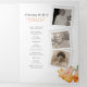 Funeral order of service tri-folded six page orange lily watercolor pencil art program. Embellished with orange bell lily flowers on a white background. Simply replace the sample text and instant style white framed photo holders with your own special photos and information details. Original botanical hand watercolor pencil and design by Sarah Trett for www.mylittleeden.com (photos are just placeholder images for you to replace with your own).