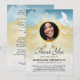 This funeral sympathy thank you card is a simple way to thank those that attended the funeral or supported you during your time of grief. This memorial thank you note features the gold gates of heaven set in the clouds, a photo of the loved one you lost, a dove, and a thank you template that is easy to personalize. On the back is extra text for you to add a poem, hymn or prayer.
