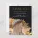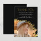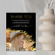 Modern funeral thank you note on a flat invitation card is a simple way to thank those that showed you comfort during your time of grief. The card features a photo of your loved one using a brush stroke effect, with gold accents, and a simple appreciation template that is easy to personalize.