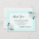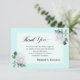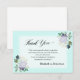 This funeral thank you card features elegant script and is accented with purple flowers on a light teal background. Add your own personal message.