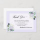 This funeral thank you card features elegant script and is accented with purple flowers on a light purple background. Add your own personal message.