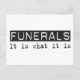 Funerals, It Is What It Is. If Funerals are your hobby, occupation, or obsession, show it with great Funerals t-shirts, mugs, stickers, and more. They're also great gifts for other Funerals fans!