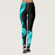 Abstract swirls of smoke in teal blue popping on a black background, modern on trend funky leggings