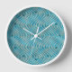 Funky Aqua Turquoise Blue Curved Lines Art Pattern Clock