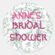 Custom bridal shower sticker with green botanical watercolor art elements on the background.