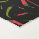 Black yoga mat printed front and back with a hand drawn pattern of red and green chilli peppers, with an editable strip across the bottom to add your own name or message