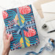 Bold coloured abstract funky design on dark blue