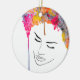 Funky watercolour hand drawn lady with psychedelic colourful crazy hair. Original art