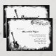 Torn paper background, electric guitar, treble clef, and music staff on this fun black and white quinceanera (15th birthday party) invitation for music lovers. Shown on basic paper, but you can upgrade to any type (metallic is fun).
